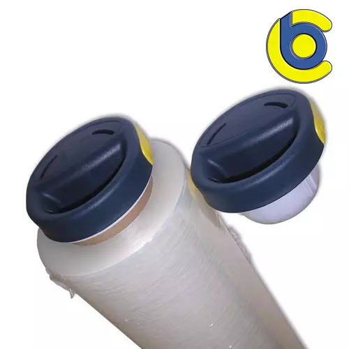 Simples e eficiente a manopla filme stretch se compõe por um par de roldanas em plástico injetado que se acoplam ao tubete do filme e cria uma mobilidade para ser aplicado de forma simples e rápida sobre os volumes.